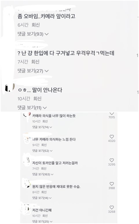 카메라 의식한 거 같기는 한데 ㄹㅇ 저렇게까지 욕 먹을 일임? 수준 차이가 확실히 느껴짐 싫으면 걍 넘기지 굳이굳이 왜 욕을 하는지 이해 안 감…