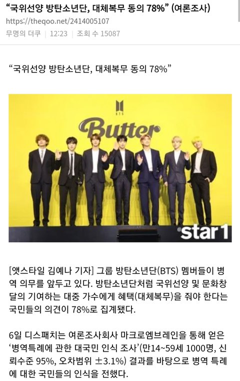 디스패치에서 조사해놓고 방탄 면제가 국민의견인마냥 조작질