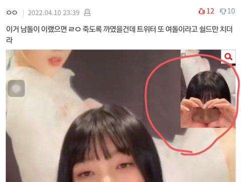 이거 남돌이 이랬으면 ㄹㅇ 죽도록 까였을건데 트위터 또 여돌이라고 쉴드만 치더라
