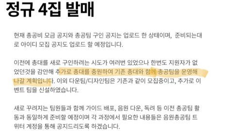다행이다ㅠㅠ 지금 총대님 그간 너무 힘들어 보이셨는데 새로운 총대님과 함께 이번 정규 대박났으면 좋겠다ㅠㅠ