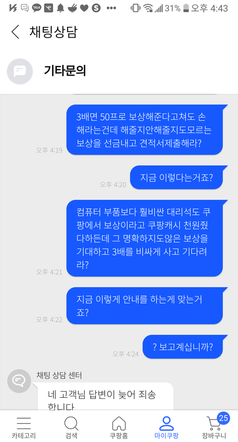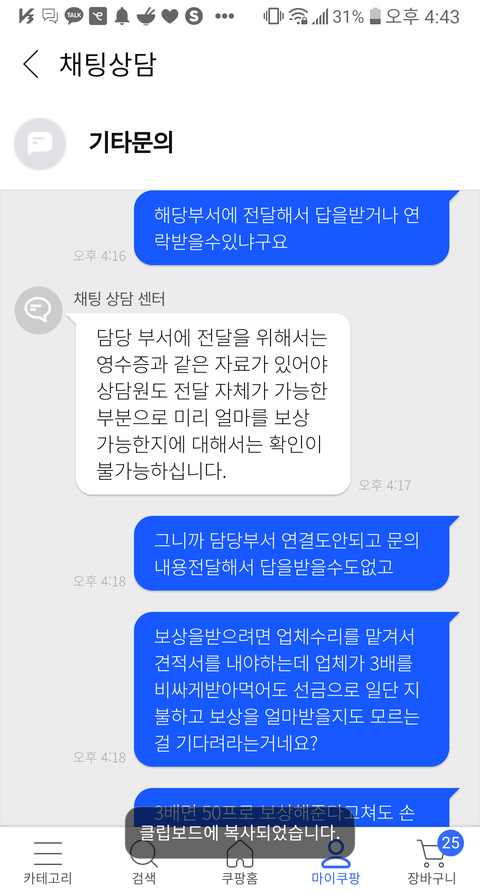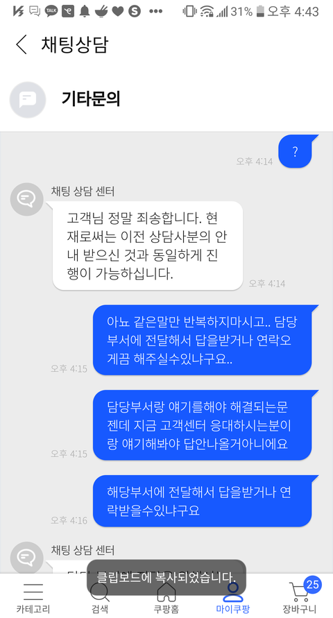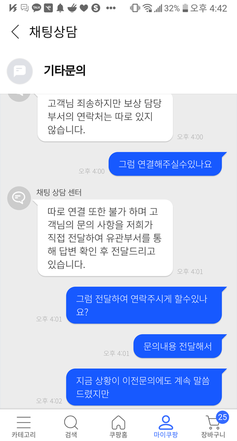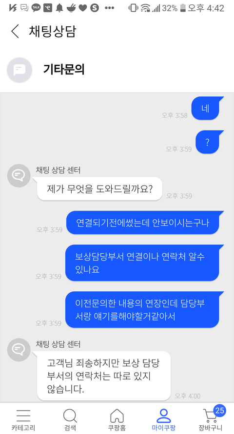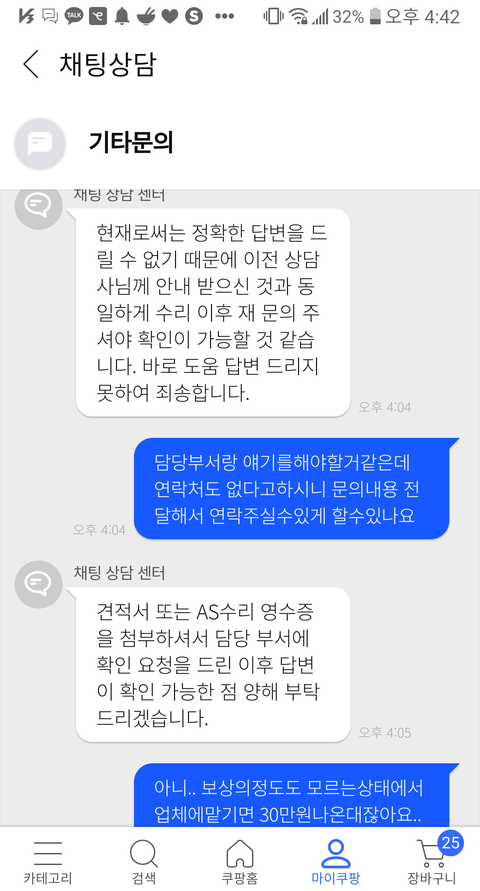 담당부서랑 얘기라도 해보고자 문의했는데 무슨 매크로마냥 같은대답만해대니..