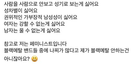 최애 밴드 멤버 반 이상이 페미니스트인데