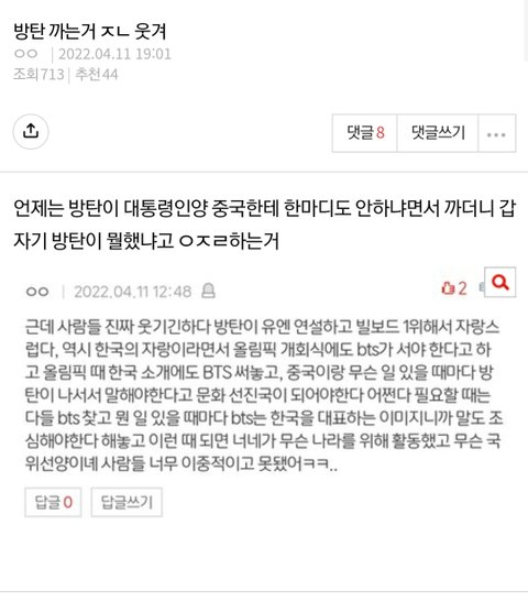 방탄 ㄱㄷ 글에