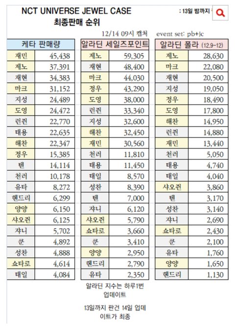 엔시티 인기순위 2022Ver