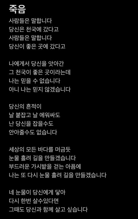 그냥 어린 아기한테 떠나간 엄마를 하늘나라 갔다고 어른들이 말해주는데 마냥 천사가 된 줄 아는 그 슬픈 영상이 자꾸 생각나서 끄적여봄 …