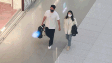 결혼식 이후 11일 만에 미국 LA로 신혼여행을 떠나기 위해 공항에 나타난 두 사람