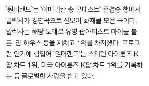 보여준 경연곡으로 음악 스트리밍 100만을 달성함