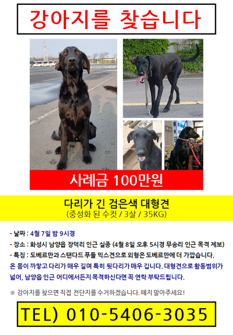4월 8일 화성시 남양읍 무송리 무송교차로 쪽에서 목격했다는 제보 이후로는 아무 것도 들어오지 않고 있습니다..