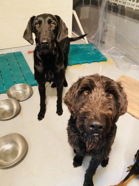 털이 짧고 검정색인 쪽이 장고(집 나간 개)입니다