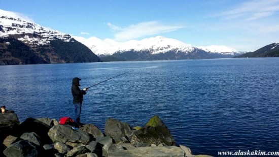바다 부둣가에서 이제 봄철 낚시가 시작되었습니다.