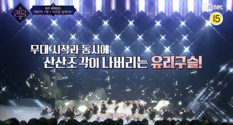 퀸덤2 무대비하인드 영상이고 본 무대에서 배경에 유리구슬 박살남