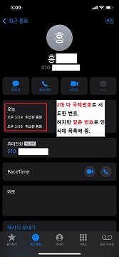 아이폰은 발신자 이름만 확인되어, 번호가 어떻게 오든 받아봐야 아는 것이죠