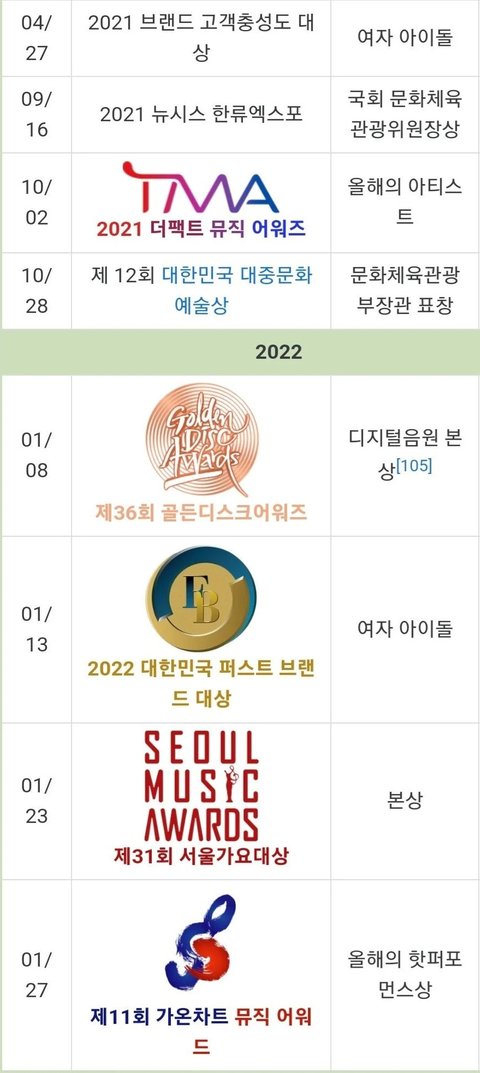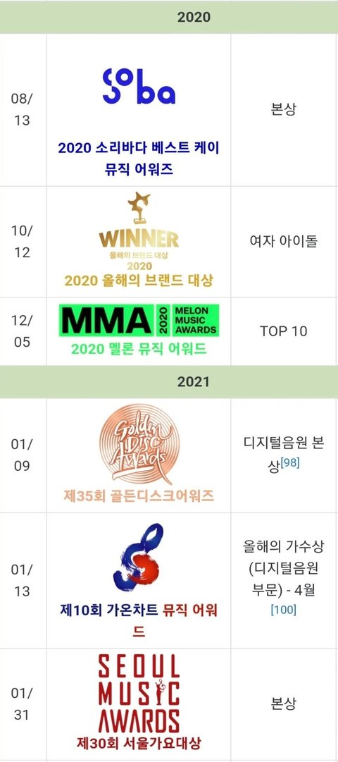 연간 18위라는 성적을 기록하고 참석한 시상식들