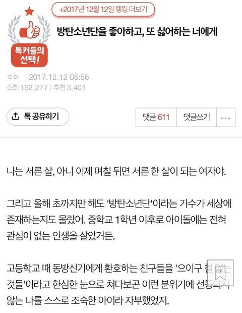 다들 아는 글이겠지만 주기적으로 읽는데 마음 너무 따스워지고 방탄 사랑하는 마음이 더더더 강해짐..ㅜ