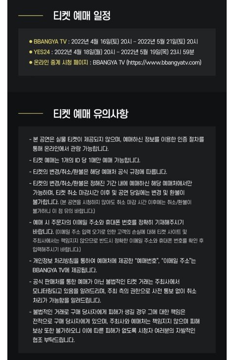 - 빵야TV : 4/16(토) 20시 ~ 5/21(토) 20시