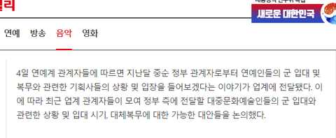 ***정부 관계자는 연예인의 입영 및 복무와 관련된 기획사의 상황과 입장을 들어주겠다고 업계에 밝혔다.