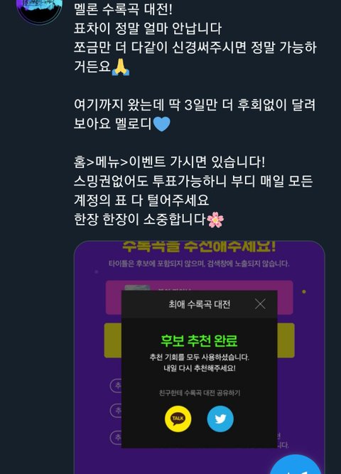 총0팀 말대로 쪼금만 더 신경써주면 정말 가능하거든? 여기까지 왔는데 19일까지 오늘까지!! 더 후회없이 달려보자ㅠㅠㅠㅠ 멜로디!!