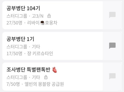 1번부터 차례대로 만들어져서 3번이 제일 최근에 만들어졌고 비밀번호는 병장님 생일 1225였던 것 같음!! 딱히 활동 규정 같은 거 없으니까 소소하게라도 같이 공부해 볼 병사들에게 추천
