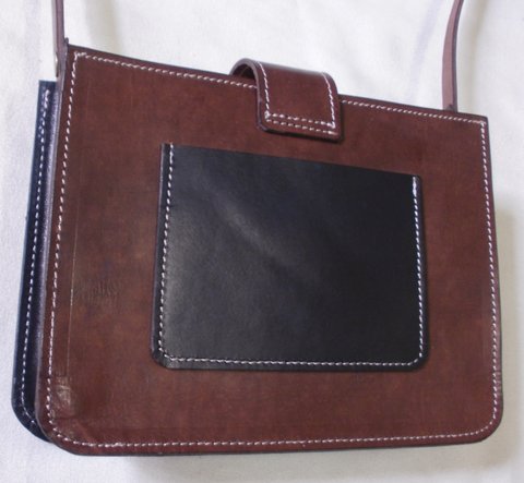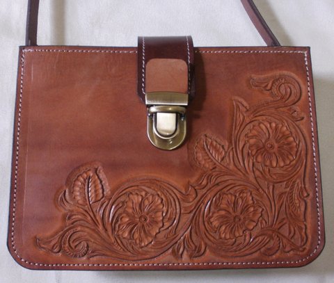 가죽에 셰리던(셰리든) 디자인을 카빙하고 천연 염색하여 제작한 천연가죽 미니 백입니다.(마디샤)