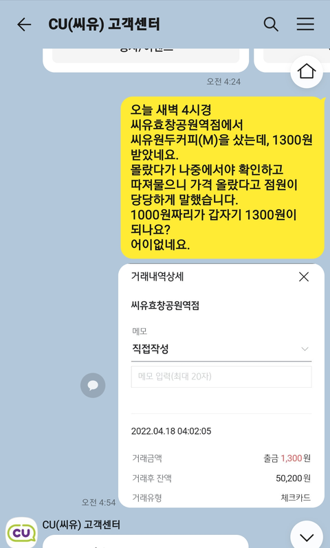 그 커피 마시면서 CU앱 고객센터에 이 사연을 올렸으나 지금껏 아무런 답도, 반응도 없다는 점. ㅎ