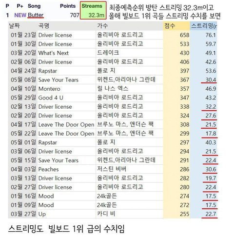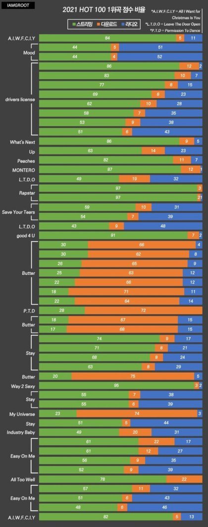 저건 말그대로 비율짤이지 스트리밍 수치 자체도 다른 1위들이랑 비슷하거나 높음