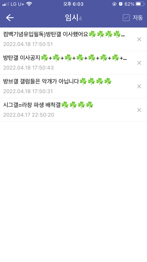 이렇게 저장 된거 확인했으면 글 도배 시작하면 돼 임시저장 글 한번 쓸 때마다 자동 삭제 되니까 글 올리기 전에 저장 무한반복 잊지말고!