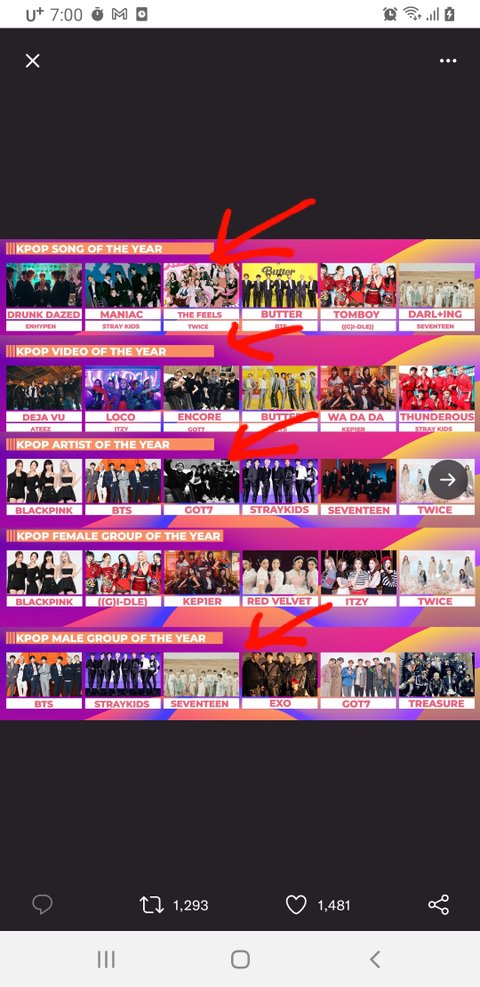 스키즈 여자 아티스트 빼고 모든 부문에 후보임