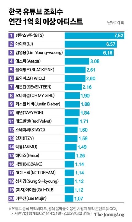 방탄 아이유 임영웅