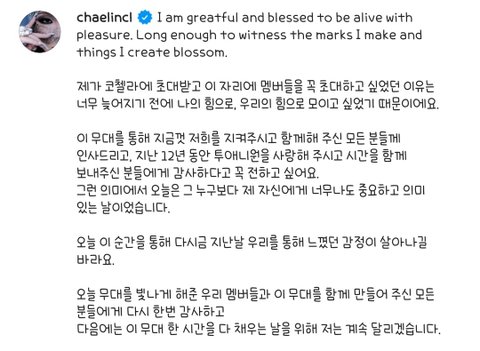 '이 무대를 통해 지금껏 저희를 지켜주시고 함께해 주신 모든 분들께 인사드리고,