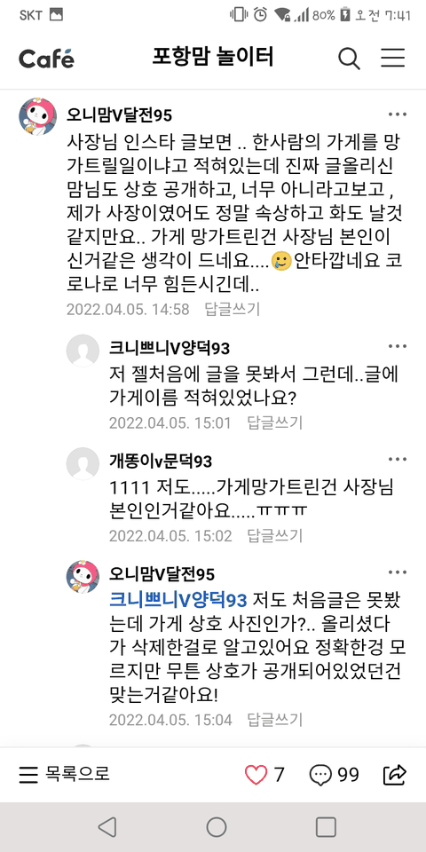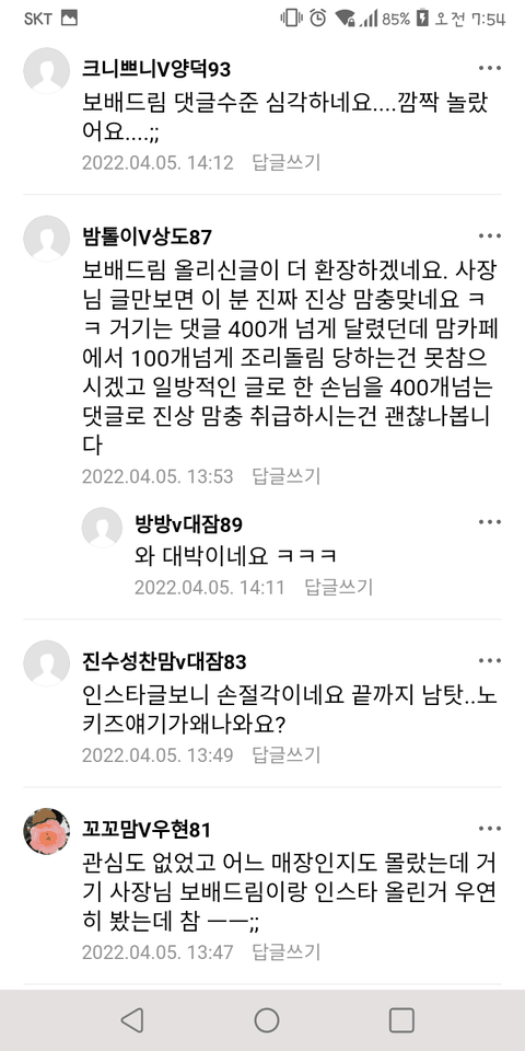 보배드림에 글썼다고 맘카페에서 더 욕먹는중.