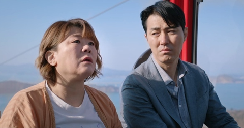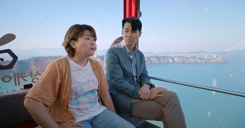 동창회에서 한수(차승원)한테 손짓하는 은희(이정은) 보고