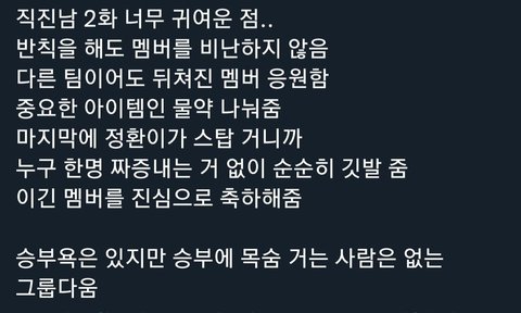 지금까지 트맵 재밌다고 톡선 올라올 때마다 걍 솔직히 얘네 또 바이럴하노? 이랬는데 오늘 갑자기 콩나물국밥 먹다가 생각나서 찾아봤는데 일단 조회수 높아서 그때 1차로 놀랬음. 그리고 조회수 높은 순으로 몇 개 봤는데 일단 베이비시터 편이 왜 조회수 ㅈㄴ높은지 알겠음ㅇㅇㅇㅇ 내 기준 의외였던 건 박정우박지훈 < 둘 다 얌전할 줄 알았음 ㅈㄴ큰 오산이었고.. ~ 멤버들 케미 좋은 건 단번에 보였고 무엇보다 애들이 각자 개성 있게 웃김ㄹㅇ 편집도 와쥐가 잘하는 거 같음 전체적으로 멤버들 성격이 내가 생각했던 트레저 이미지랑 정반대임 ㄹㅇ 다 까칠하게 생겼다고 생각햇음 ㅎㅎ 쨌든 얘네 그룹 분위기가 ㄹㅇ 좋고 자컨도 진짜 얘네가 제일 즐기는 느낌임 다 무해하고 순둥함.. 아 그리고 잘생긴 애들도 여럿 있었음 ! 앞으로 국밥먹을 때 자주 봐야겟음 자컨 추천 ㄱㄱㄱ +) 이 간지작살 티존미남 뭐냐? 미친 거 아님?;;