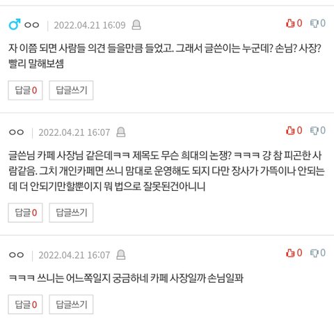 댓글남겨주시고, 고객이진상 찬 / 카페가 별로다 반