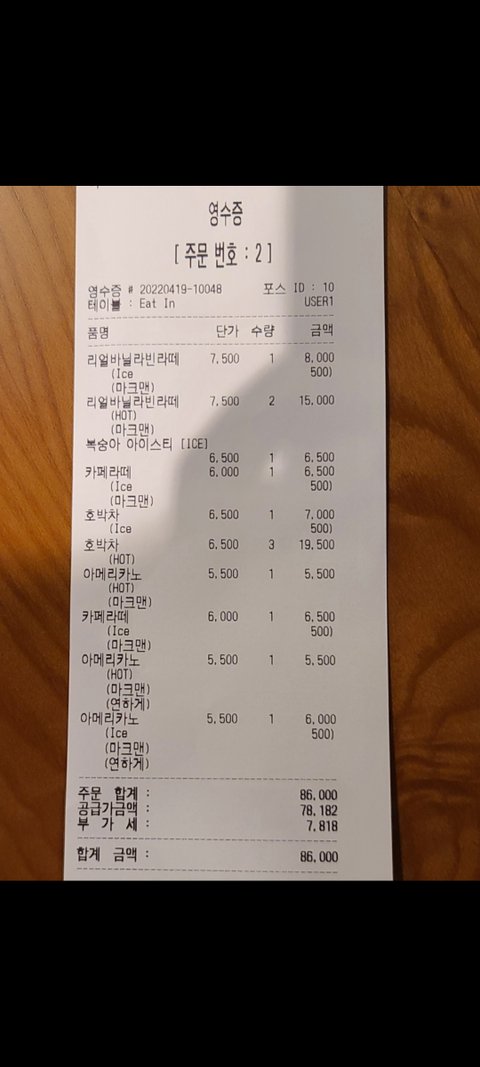 사실 대형베이커리 카페(프랜차이즈 아님 )에서 지인들이랑 음료값으로 8만6천원썼습니다. 영수증 첨부합니다.