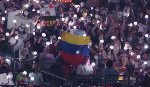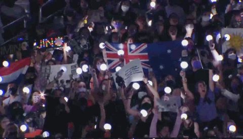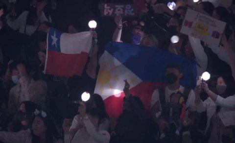 각 국기들 나오면 그 나라에서 온 팬들 다 같이 소리지르고 이러는 시간이 있음.
