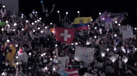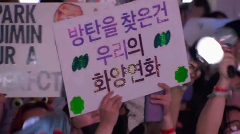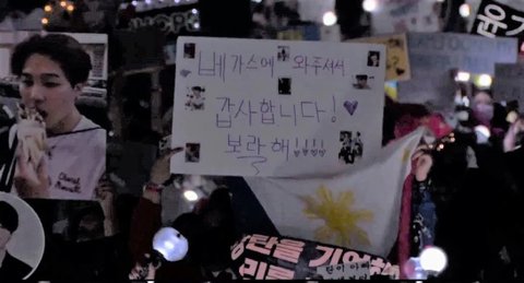 플래카드들 비춰주면서 드립날리거나 사랑고백하는데