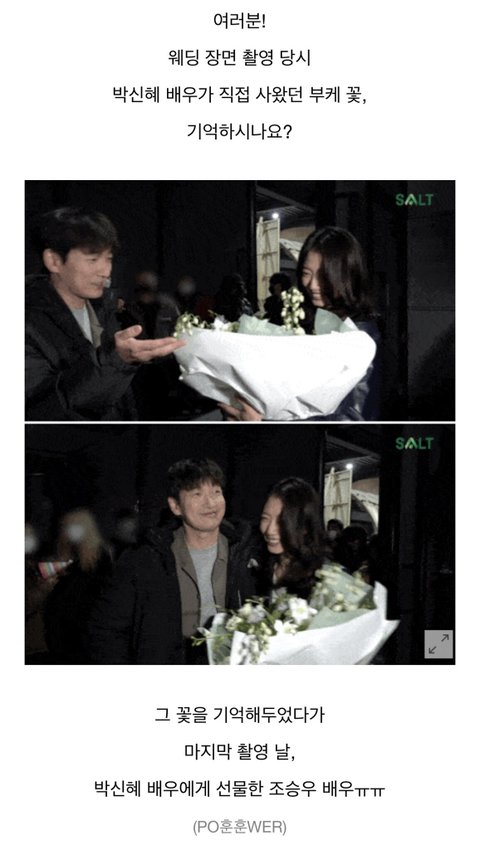 상대 배우가 직접 사왔던 꽃을 포함해서 선물해준거 감동ㅠㅠ