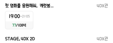 얘더라 파워오브럽 4DX관에서 하는게 4D인거지? 첫 영화를 응원해줘 저건 무조건 4D 아닌거지? 스크린X관에서 하는거면 2D겠지?