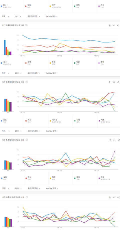 2022년 현재까지 미국에서 가장 많이 검색된 여자그룹 멤버
