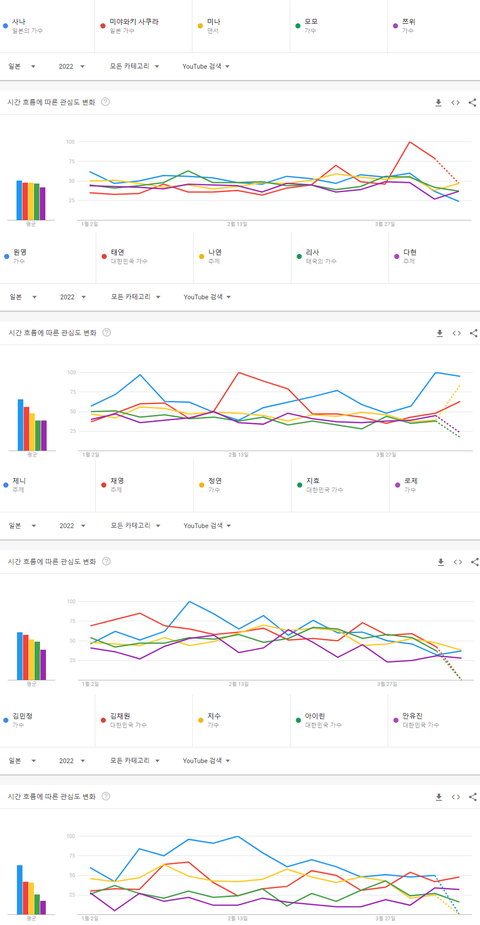 2022년 현재까지 일본에서 가장 많이 검색된 여자그룹 멤버
