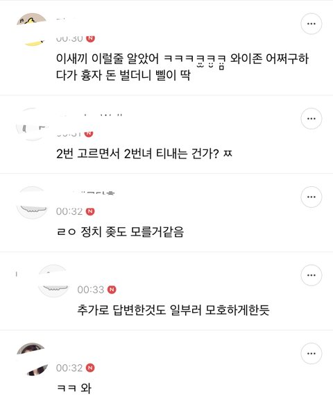 근데 너넨 후자라고 대답하고 싶을 때 2번녀야~ 이럼? 1번녀야 이렇게 대답하는 것도 ㅈㄴ 이상하고 정치색 드러내고 싶어하는 것 같음