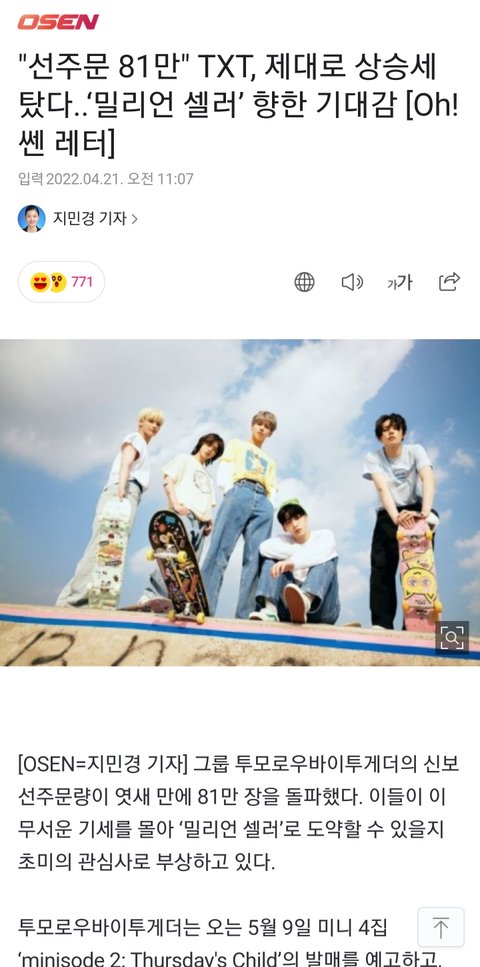 오늘자 기사 투바투 자랑스러워