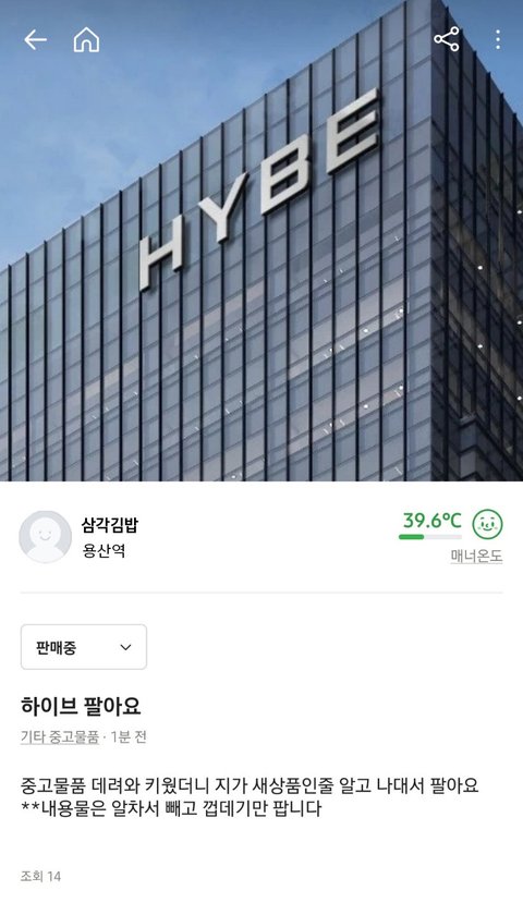 아니 당근마켓에 하이브 올린거 ㄱㅇㄱㅋㅋㅋㅋㅋ