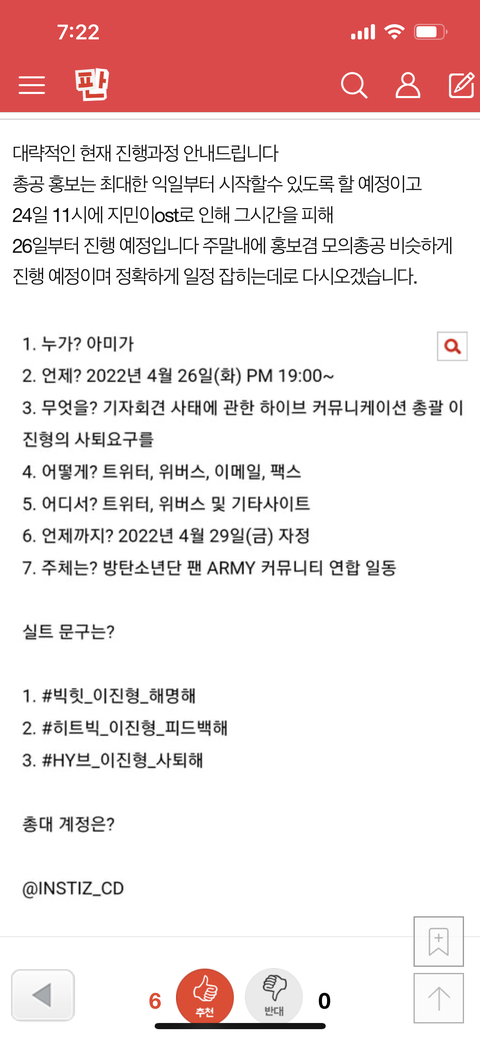 오늘 밤 11시에 방탄소년단 브이라이브갤에서 총공 어떻게 참여할지
