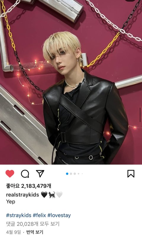 4/9일자 인스타에 검은고양이 ⬛ 이모티콘과 함께 하트 이모티콘 으로 게시물을 올림