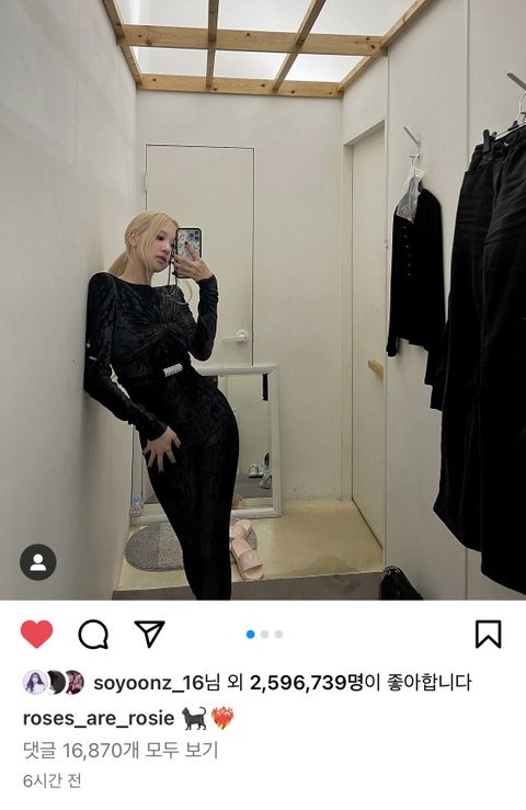 며칠 뒤 오늘 자 로제 인스타에 검은고양이 이모티콘과 하트 이모티콘으로 게시물을 올림