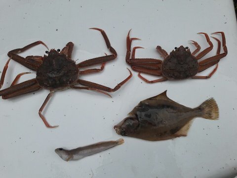 새우와 꽃게가 함께 잡혔습니다.