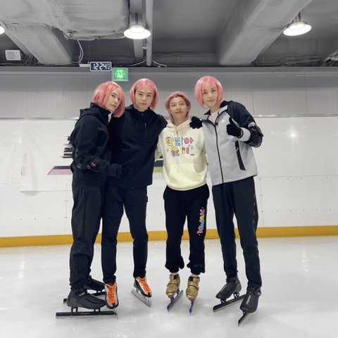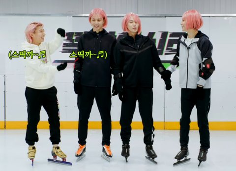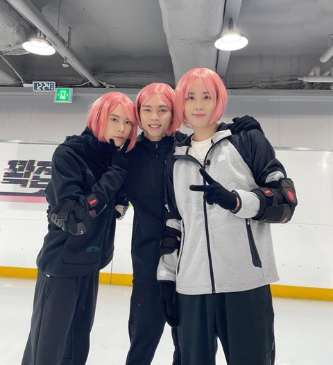 곽윤기 선수랑 자컨 찍는다고 핑크가발 쓴 쟈니 도영 정우