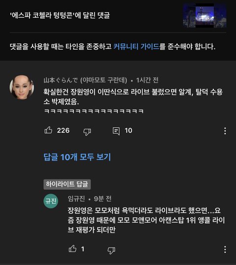 아니근데 장원영 옛날보다 비음도 없어지고 잘부르는건아는데 에스파 코첼라 라이브 한거보고 저렇게 댓글다는게 개웃김