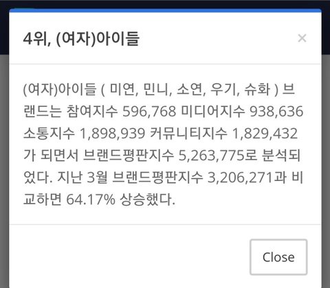 미연 민니 소연 우기 슈화 아이들 브랜드평판